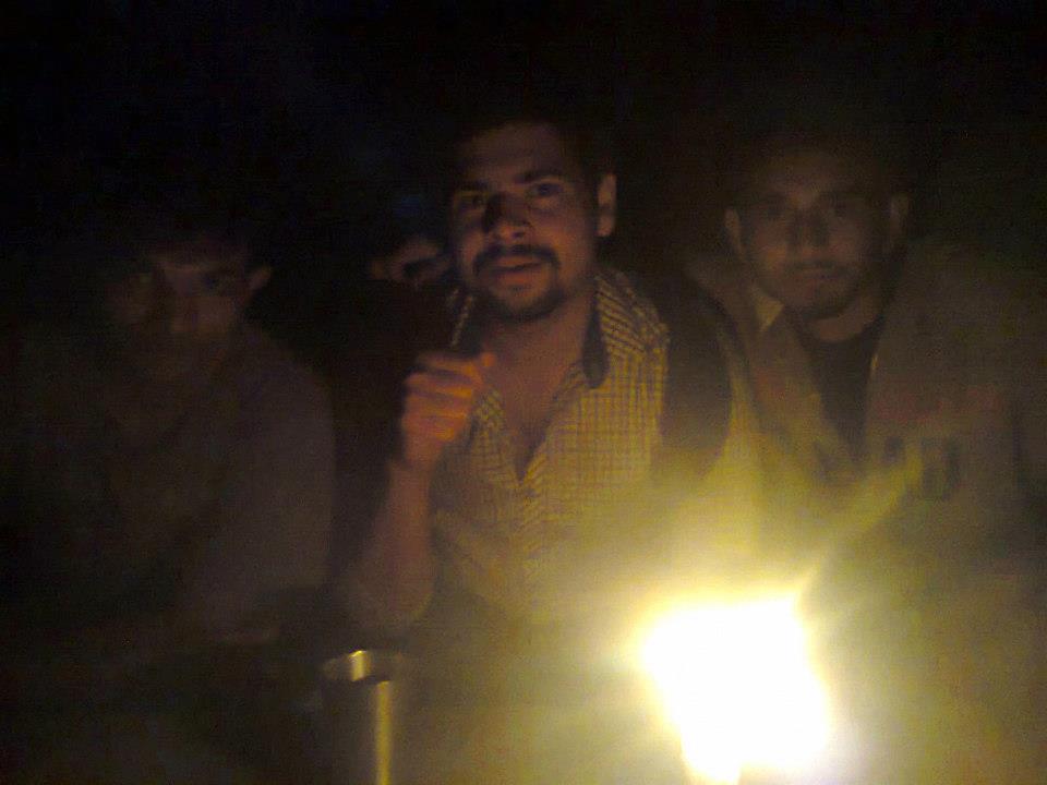 हम उस पर जितना चढ़ सकते थे चढ़े। अब साढ़े ग्यारह बज रहे थे। हम थक भी गये थे और काफी चढ़ने के बाद एक ऐसे स्थान पर थे जिधर हम थोडा लेट सकते थे। उधर से हमने ऊपर जाने का रास्ता देखा तो हमे कुछ नज़र नहीं आया। उधर चाँद की रौशनी भी नहीं पहुँच रही थी और हम इस बात को स्वीकार कर चुके थे कि अब और ऊपर नहीं जा सकते। हमने रात उधर ही गुजारने का फैसला किया। हमे लेटे हुए आधा घंटा ही हुआ होगा कि हमे कुछ इंसानी आवाजे सुनाई थी। पहले तो हम हैरान हुए। फिर जब काफी लोगों के बोलने की आवाजें आई तो हमने आवाज़ लगाईं। अंग्रेजी में पूछा ऊपर कोई है और ऊपर से भी जवाब अंग्रेजी में आया।